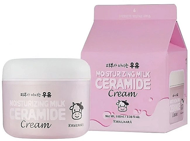 Welcos Kwailnara Moisturizing Milk Ceramide Cream Увлажняющий крем для лица 100мл. Увлажняющий крем для лица Kwailnara Moisturizing Milk Ceramide Cream южнокорейской марки Welcos обеспечивает также необходимое питание любому типу кожного покрова. Нежная консистенция легко наносится, отлично впитывается полностью, многофункционально воздействует на кожу: делает её более мягкой и гладкой, надолго сохраняет увлажнения, уплотняет и укрепляет кожный покров. Средство улучшает цвет лица и защитные функции эпидермиса, освежает и успокаивает, предохраняет от негативного влияния внешних факторов окружающей среды, повышает упругость и эластичность кожного покрова, замедляет процессы возрастных изменений, омолаживает. Ключевыми ингредиентами формулы являются: масло ши, пантенол, глицерин, аргинин, ниацинамид, керамид NP и протеины молока.
